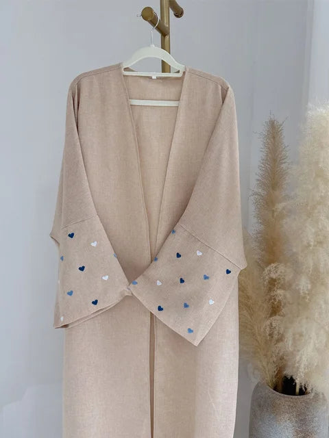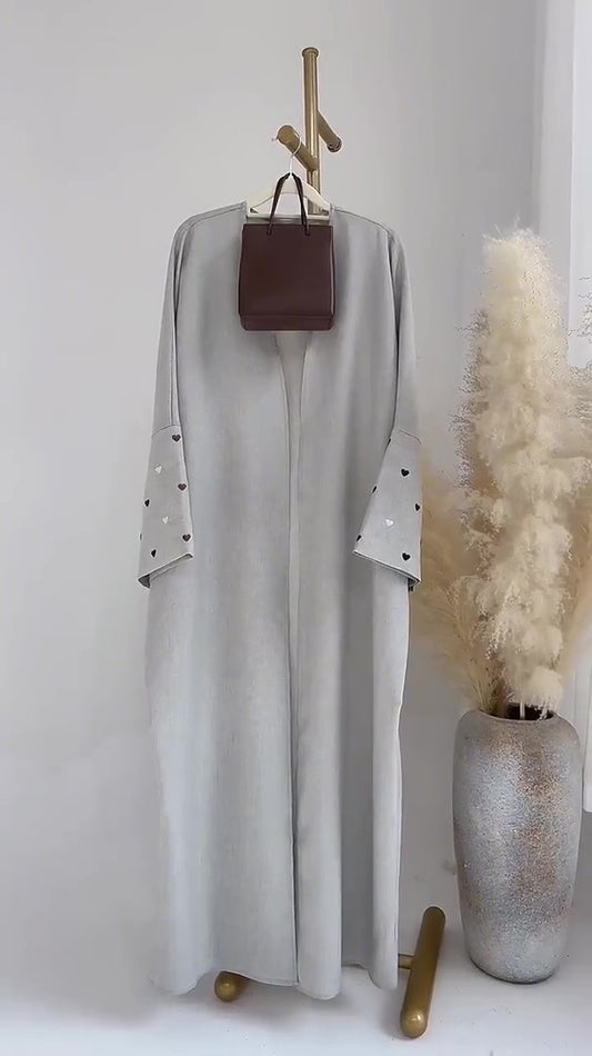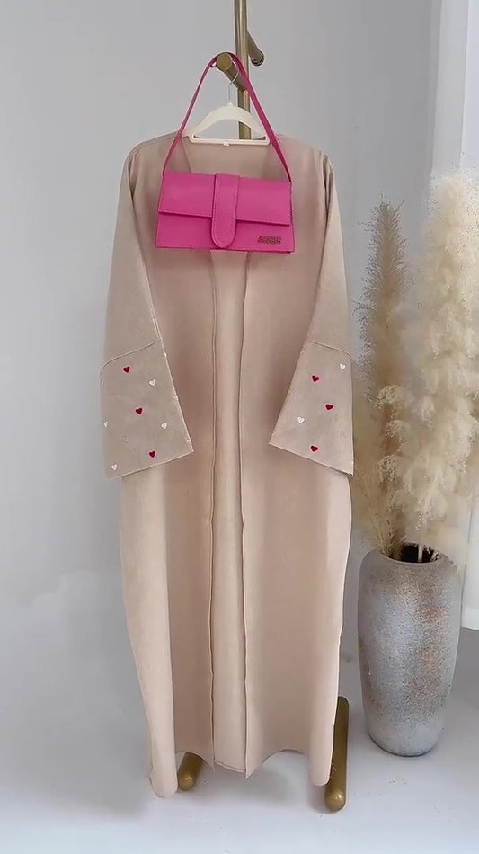 Sold outDAFNÍ Coffee-Heart-Sleeve Open Abaya